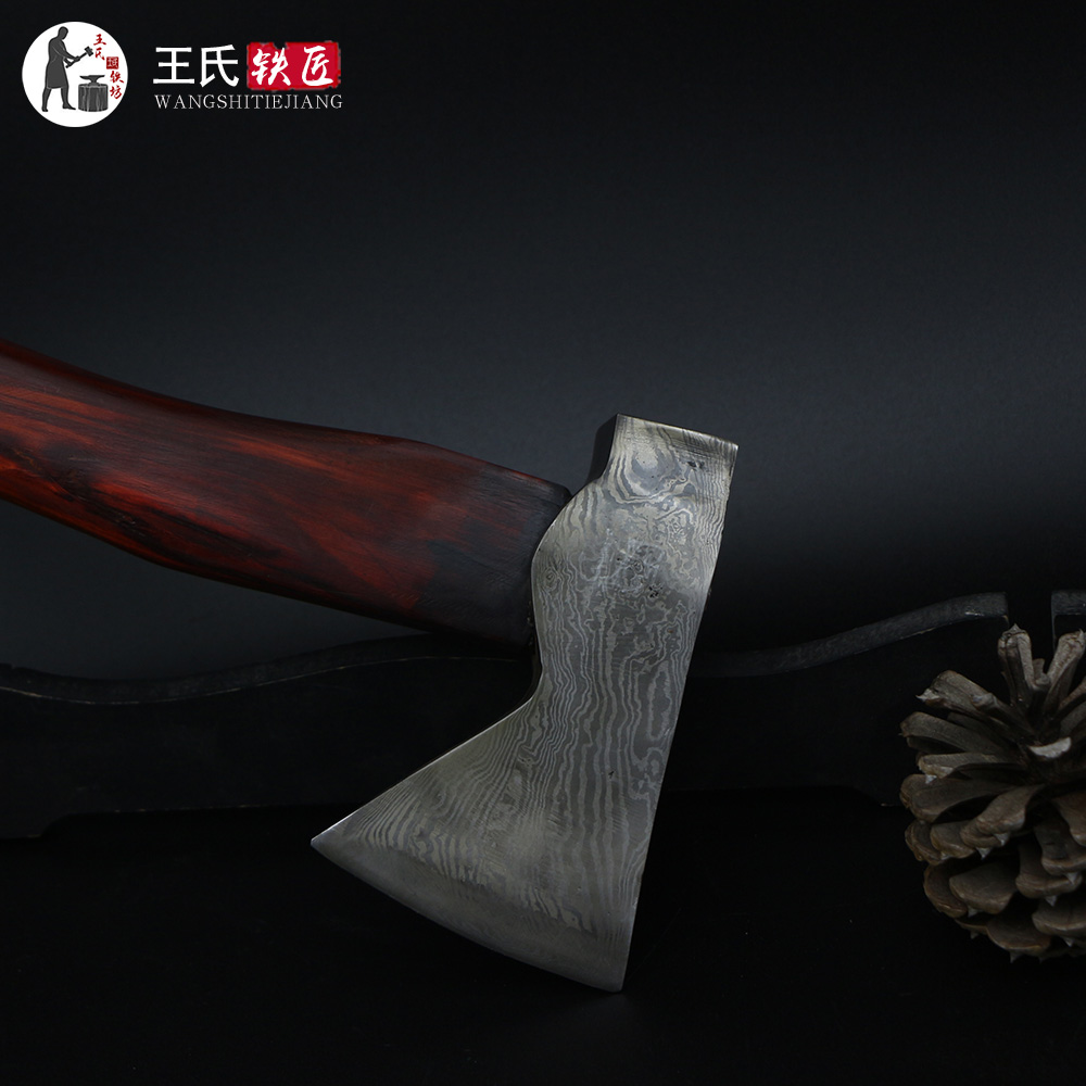 Wang's blacksmith hand-forged with patterned axe retro tomahawk Damascus Tomahawk Tomahawk Open Outdoor Axe