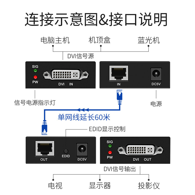 VPFET dvi extender 60 m single network cable to rj45 network transmitter computer video recorder dvi-d video lossless with edid support 24 1 HD 1080p