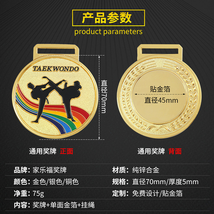 Taekwondo medal customized to make metal football listed honorary sports champion gold leaf gold and silver bronze trophy medal