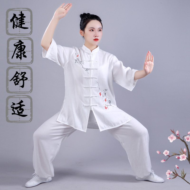Hand-painted tai chi clothing women's summer cotton and linen short-sleeved martial arts training clothing breathable tai chi clothing women's suit new painting