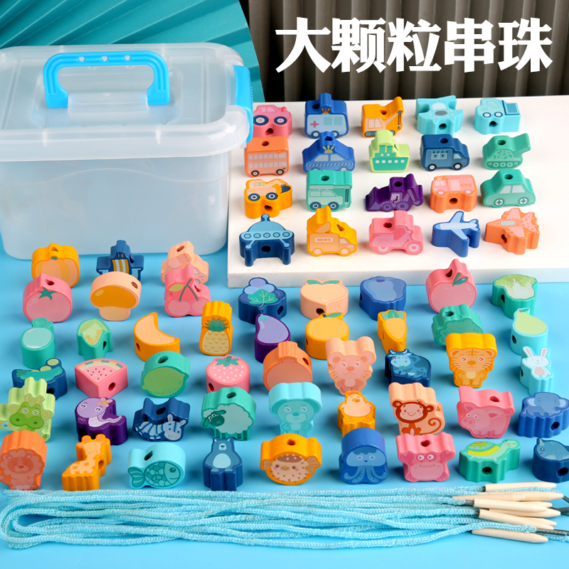 Children string beads wearing beads Wearing Rope Wooden early teaching threading around Pearl building blocks 2-3-4-year-olds Puzzle Power Toys