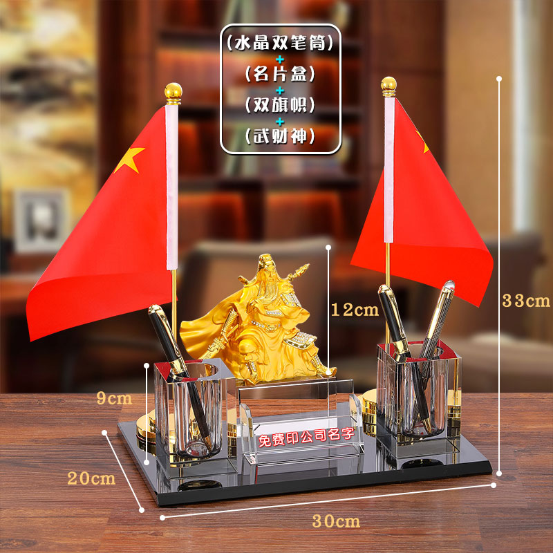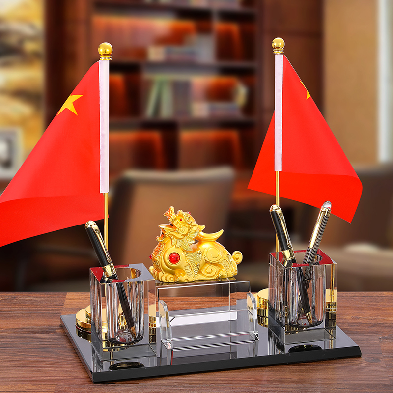 Crystal double pen holder name sheet box double flag golden hair Chair crystal double pen holder name sheet box double flag winged horse to successful crystal double pen holder name sheet box double flag big exhibition macro picture