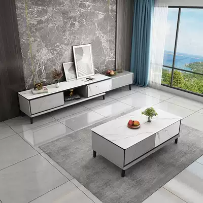 Nordic light luxury Rock Board coffee table TV cabinet combination retractable living room floor cabinet modern simple small apartment TV cabinet