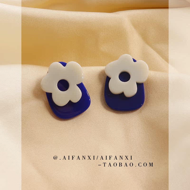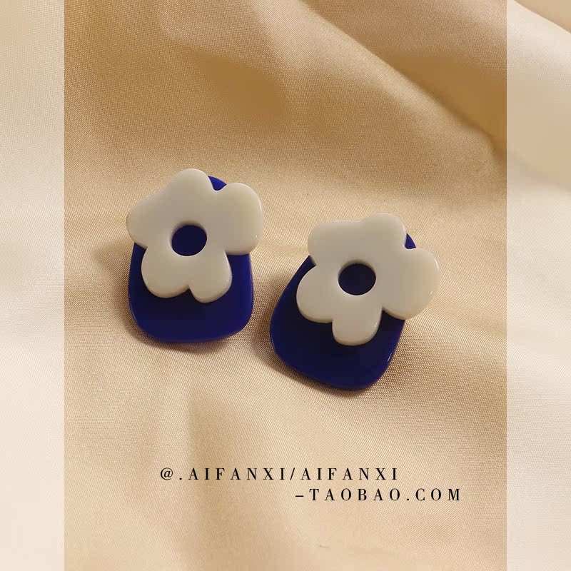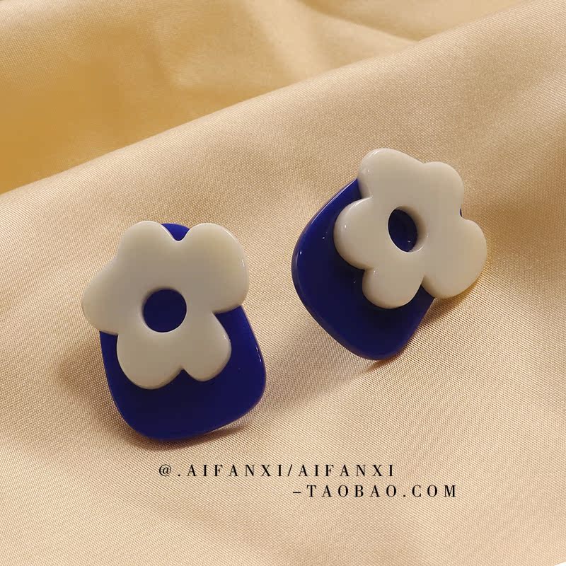 Acetate Superfairy Irregular Earrings Woman Blue Flowers Summer Ear Pins small crowdsourced clear port Wind 100 hitch