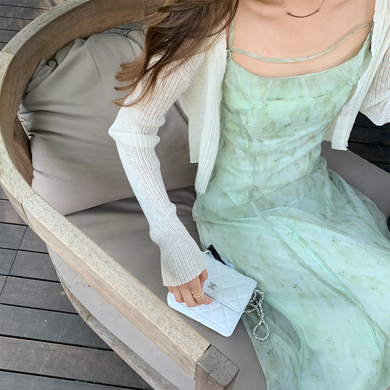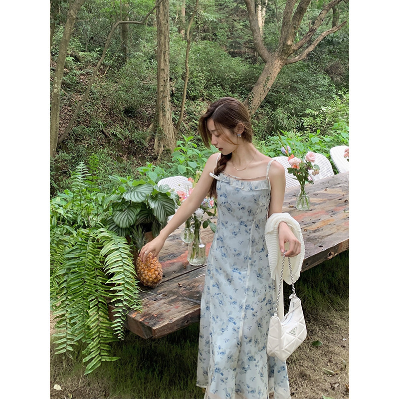 cchen Chen Chen_Tea break French dress female 2022 summer new floral small first love green suspender skirt