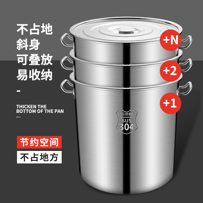 Stainless steel bucket with lid thickened commercial 304 food grade bucket braised meat pot porridge bucket high pot bucket soup pot