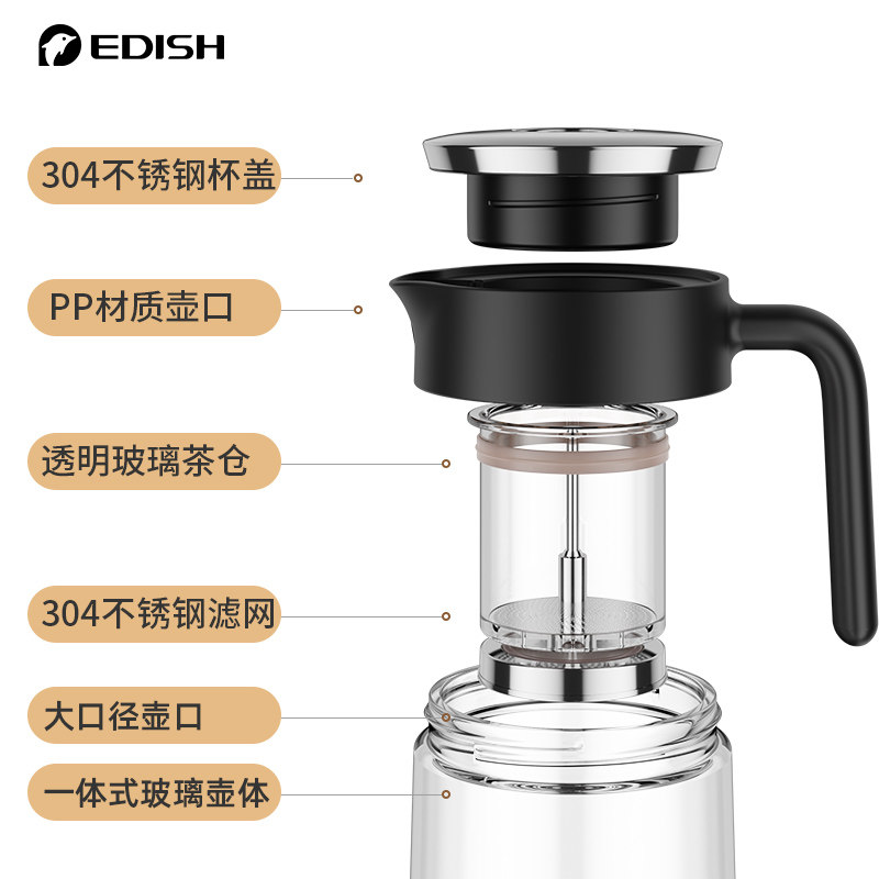 Germany EDISH Elegant cup tea pot Tea water separation filter Flower tea brewing tea set Heat-resistant glass household tea set