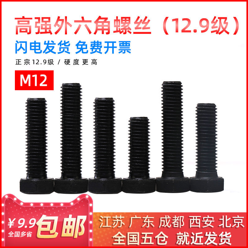 National standard 12 9-level outer hexagon screw high-strength bolt M12*20 25 30 35 40 50 60mm