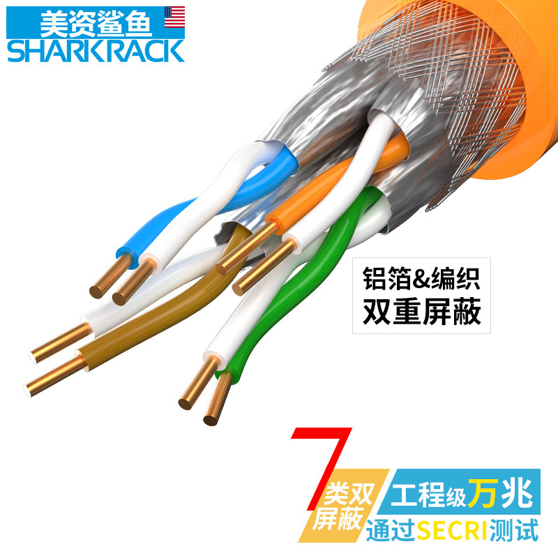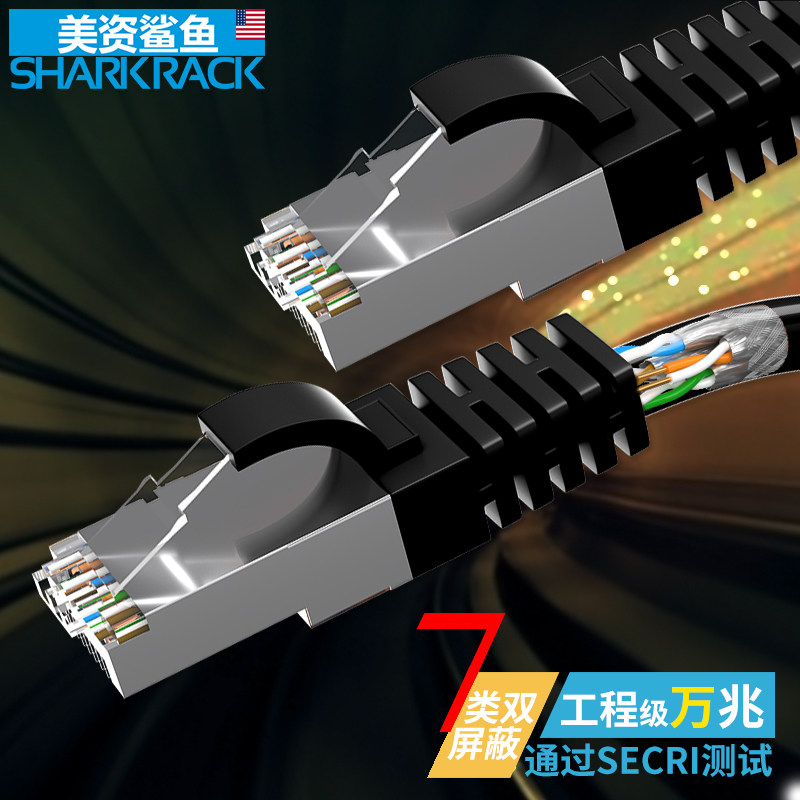 U.S.-funded shark seven types of engineering grade oxygen-free copper double-shielded 10-gigabit indoor and outdoor network cable 7 types of computer router broadband monitoring high-speed finished network S FTP jumper cable