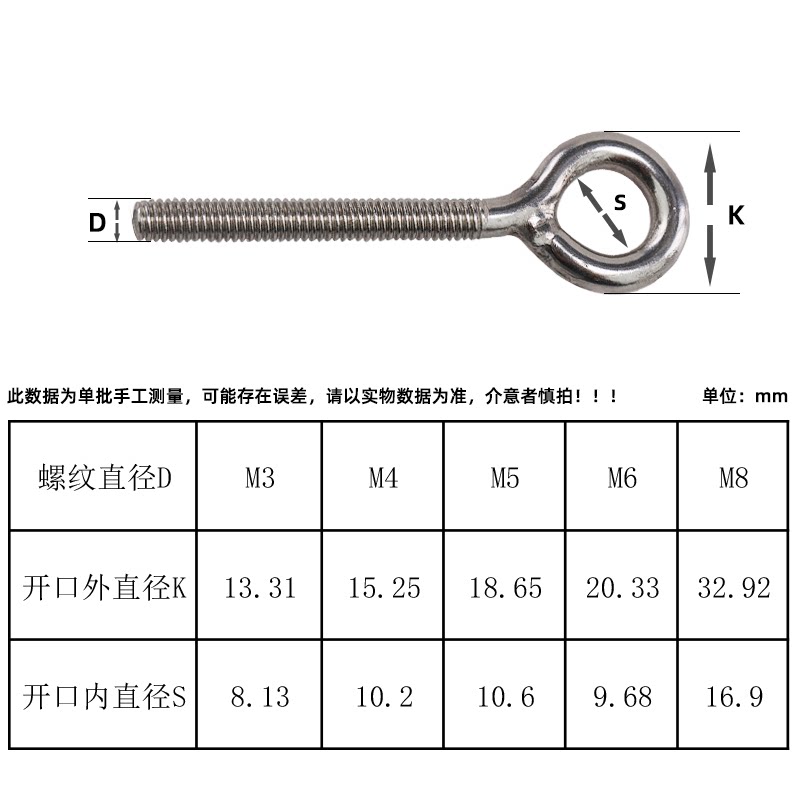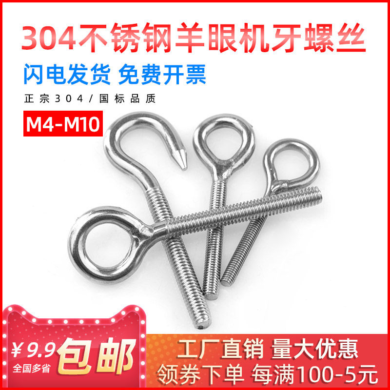 National standard 304 stainless steel sheep eye machine tooth screw hanging ring screw closed hook with ring screw M4 5 6 8