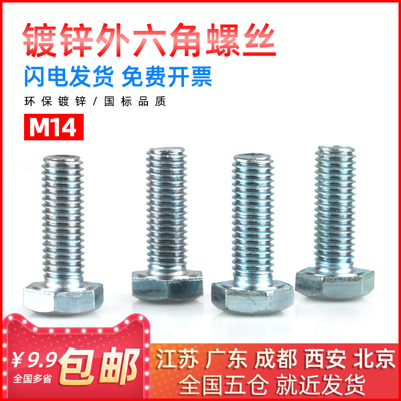 Galvanized high strength outside hexagonal bolt screw plating blue and white zinc M14*30 35 40 45 50 55 60 70