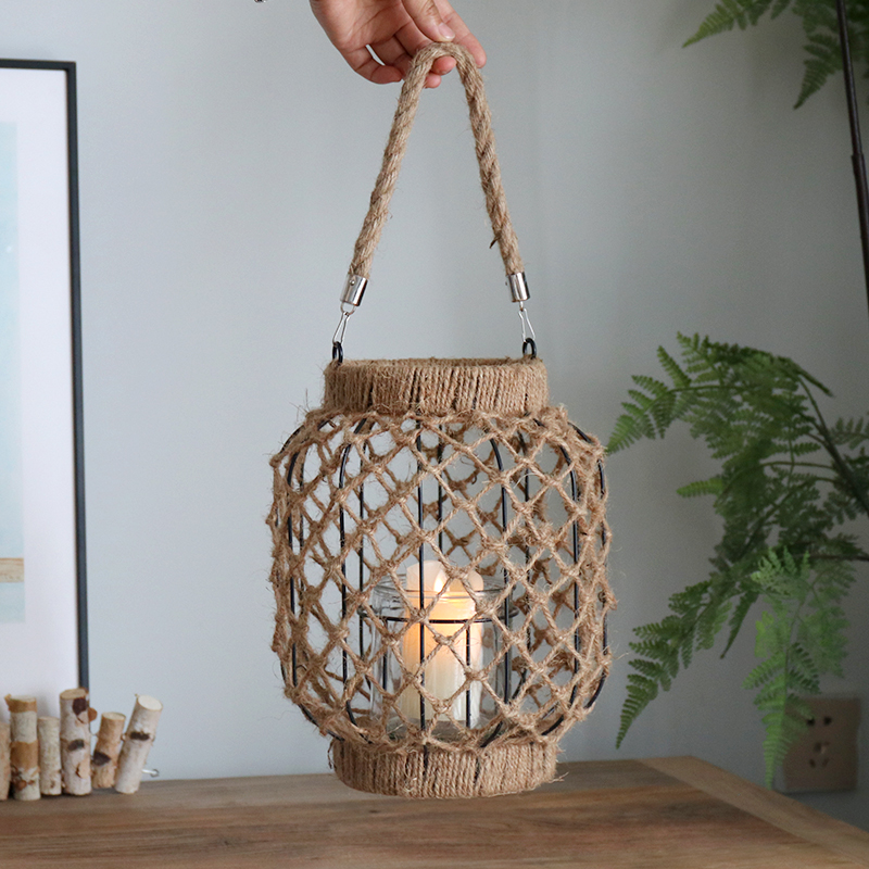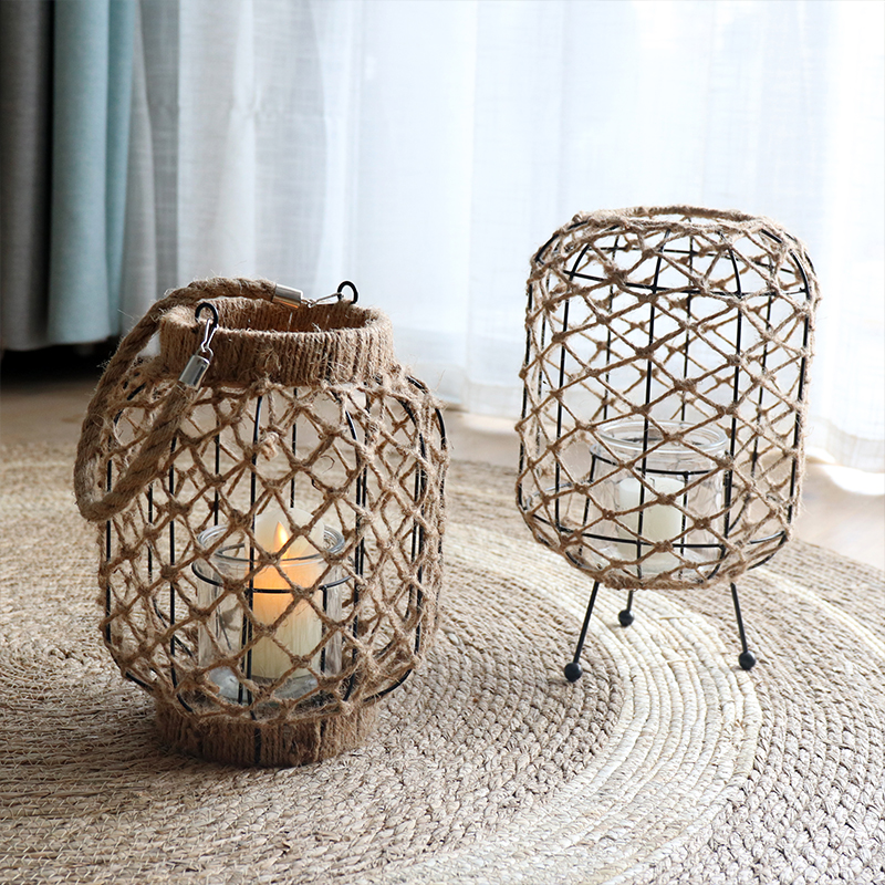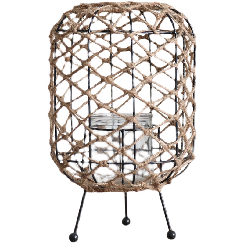 Creative hemp rope handmade candlestick decoration windproof lamp homestay home decoration outdoor courtyard garden landscaping teahouse display