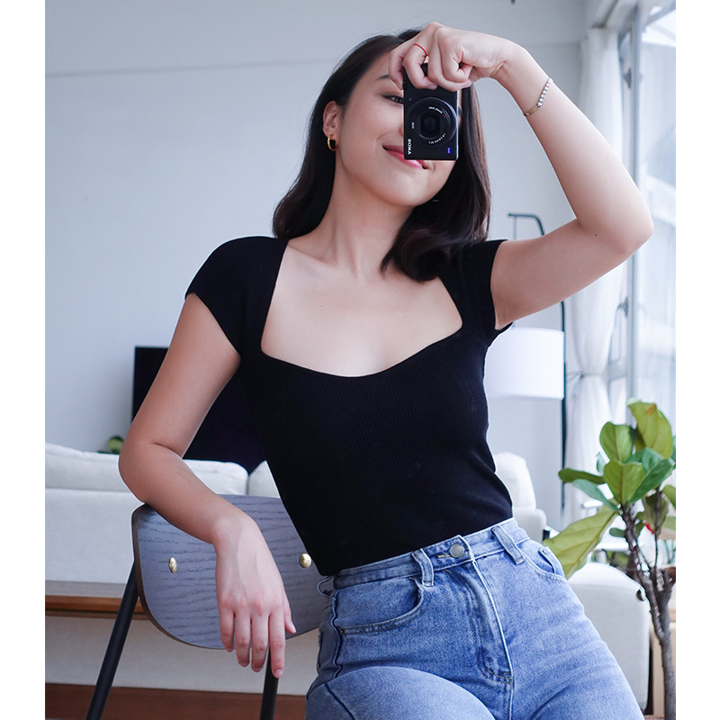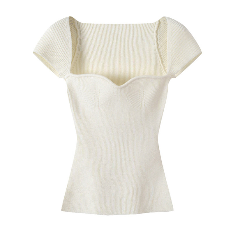 thecherrypie 21 summer new niche design M-neck tight-fitting thin stretch knitted sweater women's top