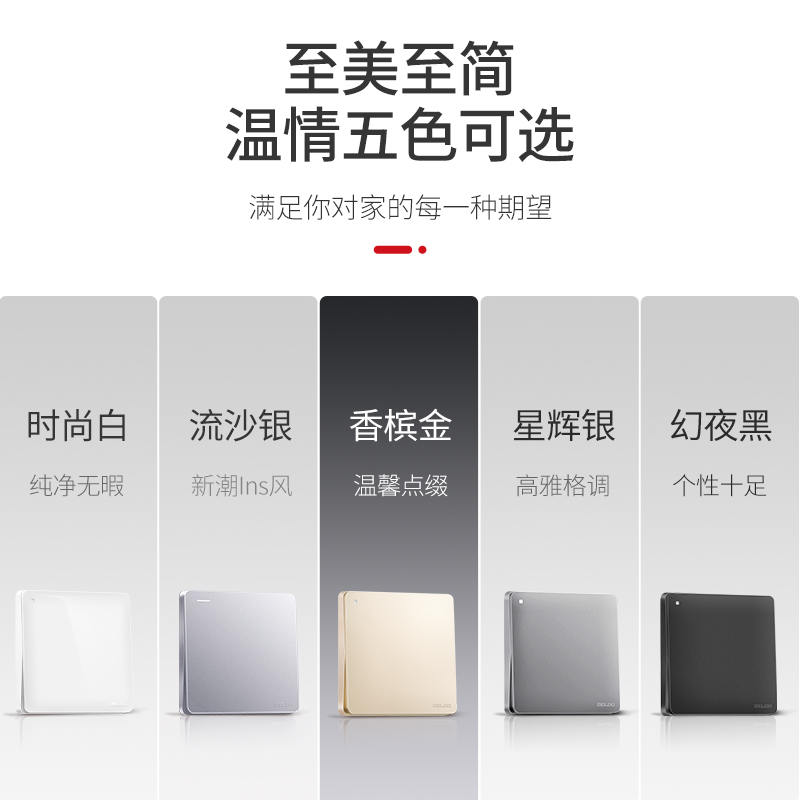 Delixi official switch socket 86 type five-hole with double USB panel concealed household power socket 821 gold