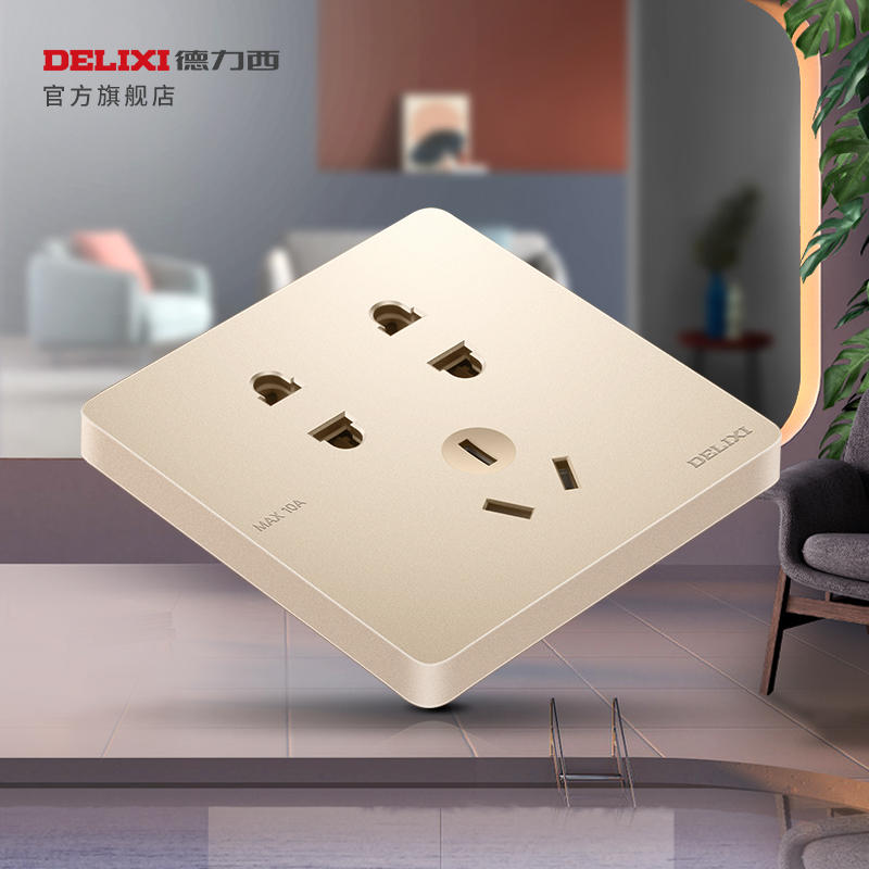 Delixi official flagship store switch socket seven-hole porous 86 type household concealed power panel 821 gold