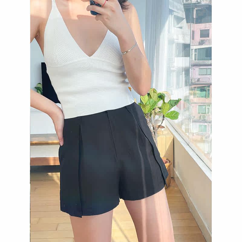thecherrypie 21 summer Korean version high waist loose wide leg straight slim solid color casual short suit pants women