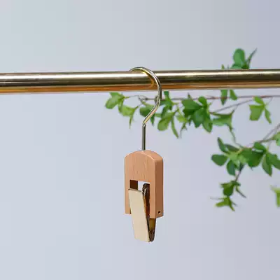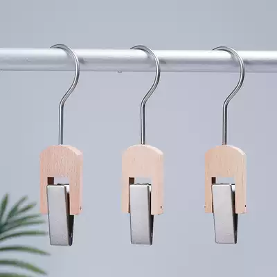 Clothing store solid wood hanger single clip multi-function metal coat clip pants rack log seamless non-slip clothes hang