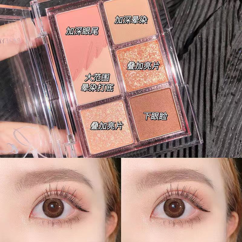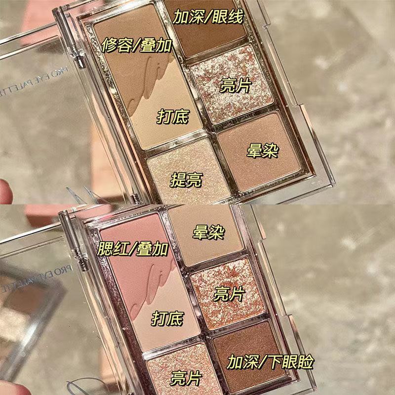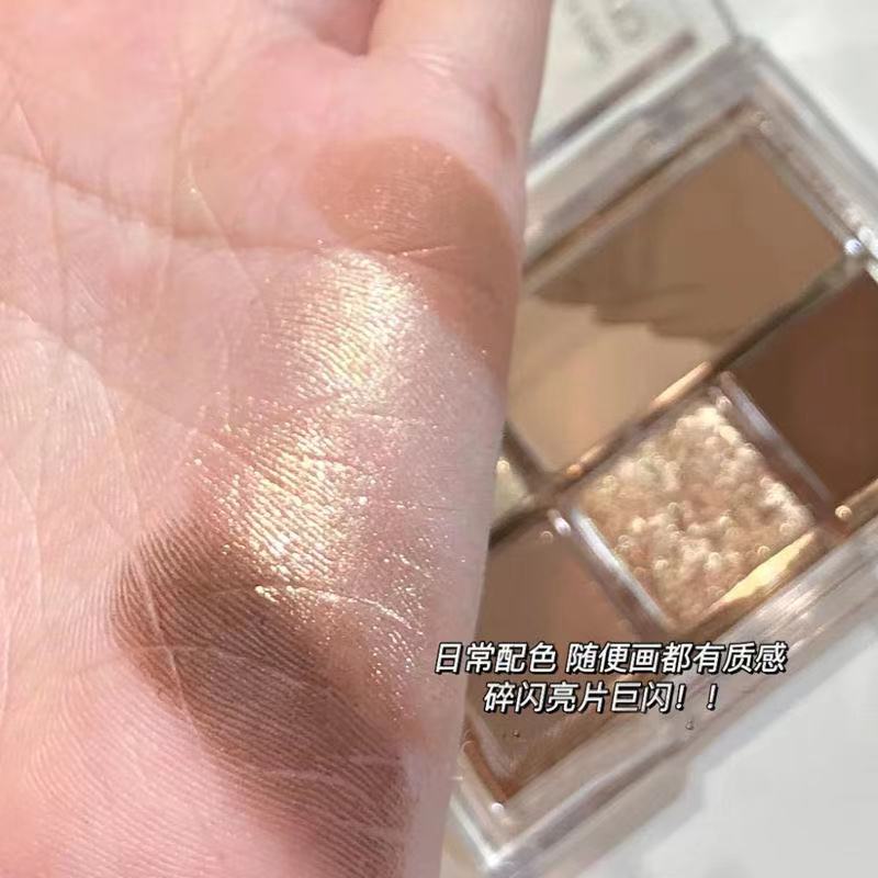 2021 Summer new mini 6 colors small eye shadow pan baked milk tea earth beaded shiny pink sequins overfire