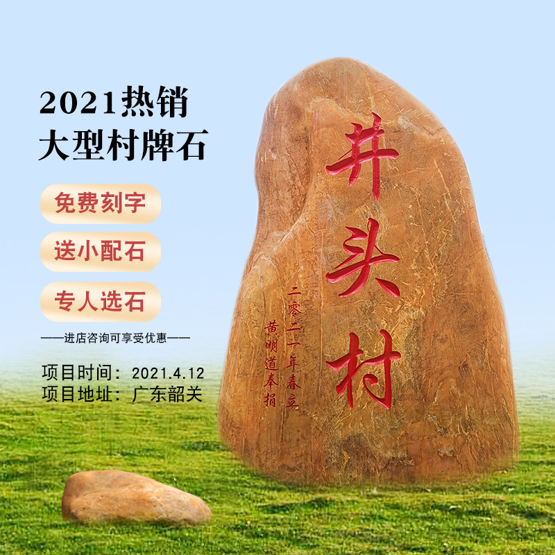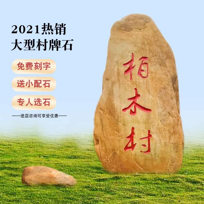 View Stone Lettering Sign Stone Natural Yellow Wax Stone Countryside Renovation Village Entrance Construction With Stone Natural Yellowstone Wind Landscape Stone