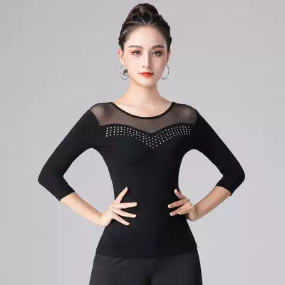 Latin dance top women's mesh new modern dance clothes practice adult national standard hot diamond fashion dance clothes dance clothes summer