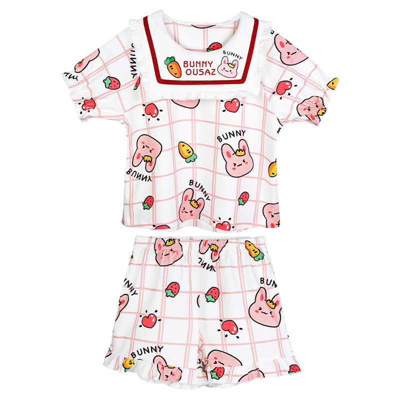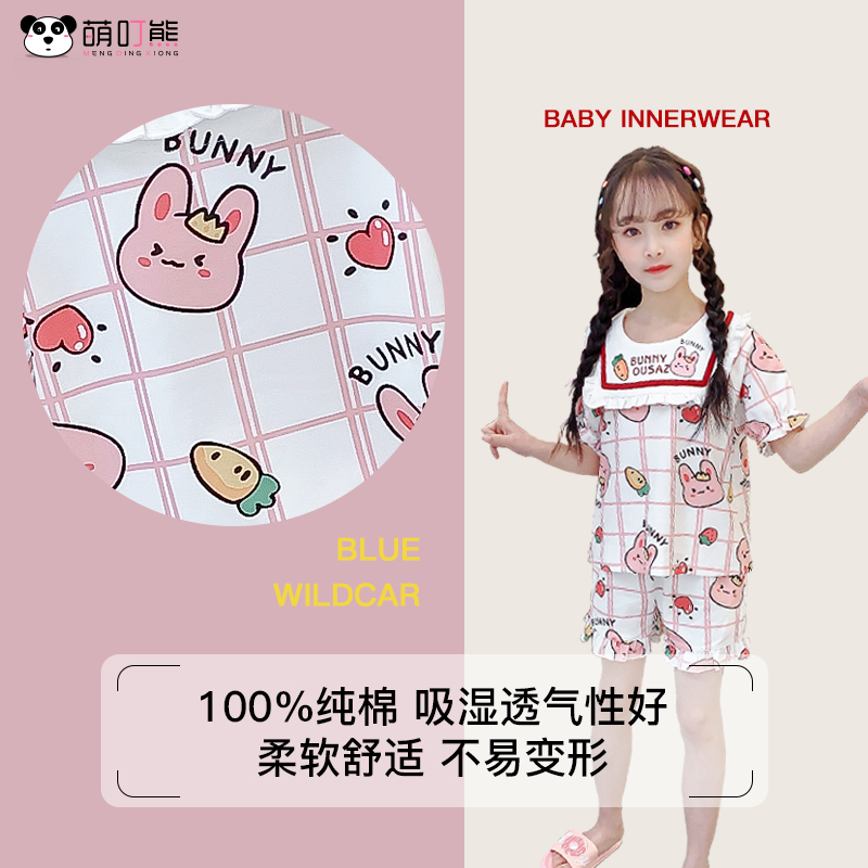 Cute Bear Pure Cotton Girl Sleepwear Children Summer Thin style short sleeves Two sets girls CUHK Home Suits Suit