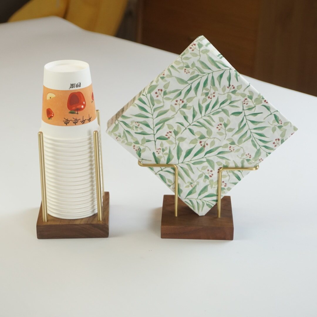 Black walnut brass paper cup holder milk tea bar storage wooden disposable paper cup cup holder coffee cup holder