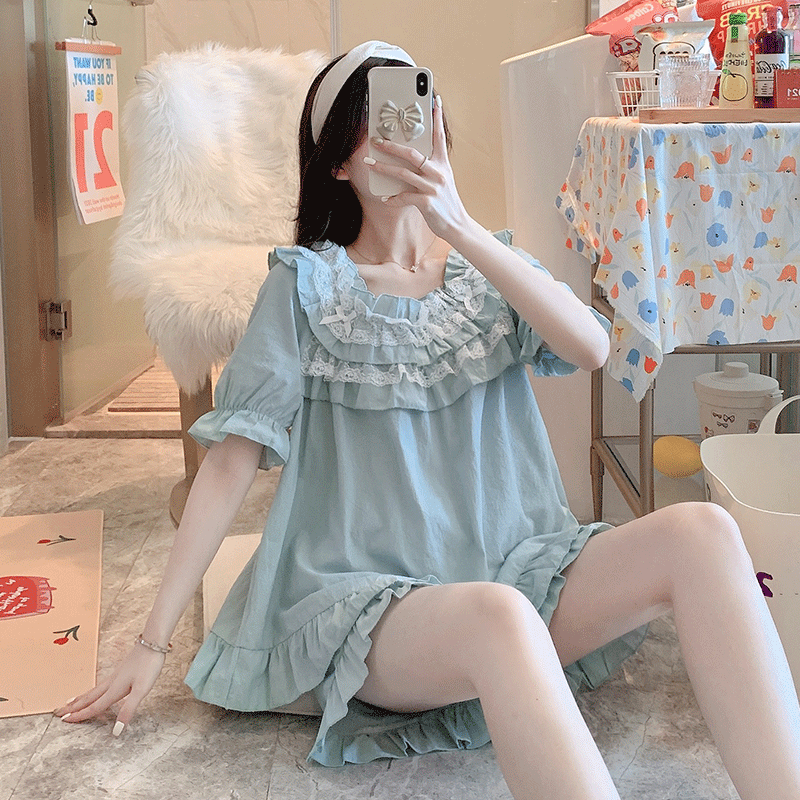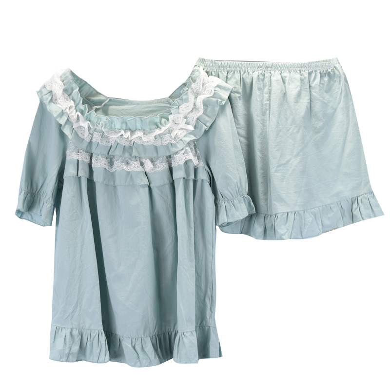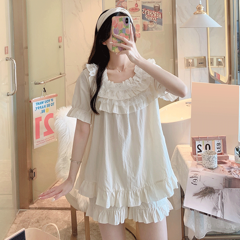 Pajamas women bring summer short sleeve shorts pure cotton cute French court wind princess home suit