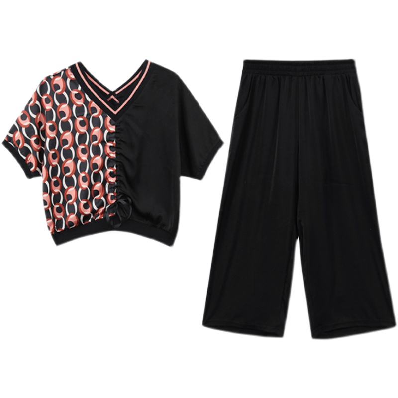 TOUCH MISS light luxury brand casual sports suit women's summer thin loose short-sleeved wide-leg pants two-piece set