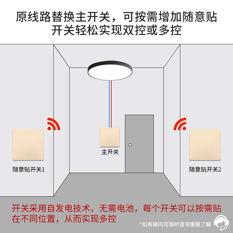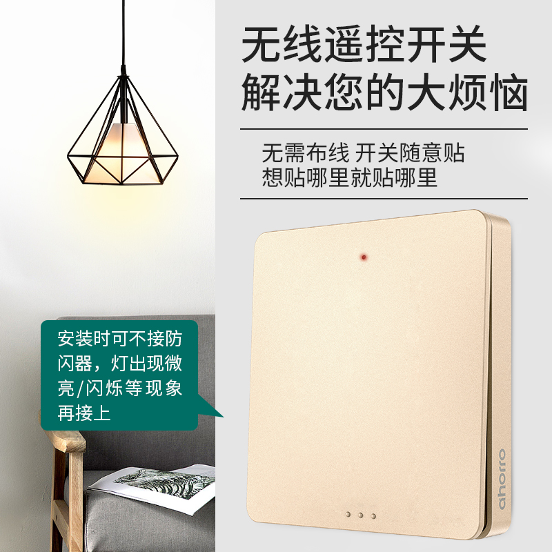 Golden Single Fire Wireless Switch Four - open Dual - controlled Remote Control Switch Panel Wire Household Bedhead 220V Self - generated Power