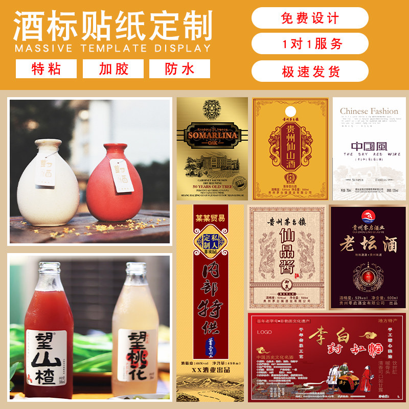 Hakka rice wine label sticker custom high-end wine bronzing trademark logo design liquor sticker printing