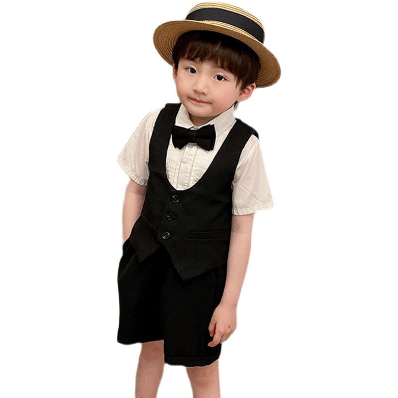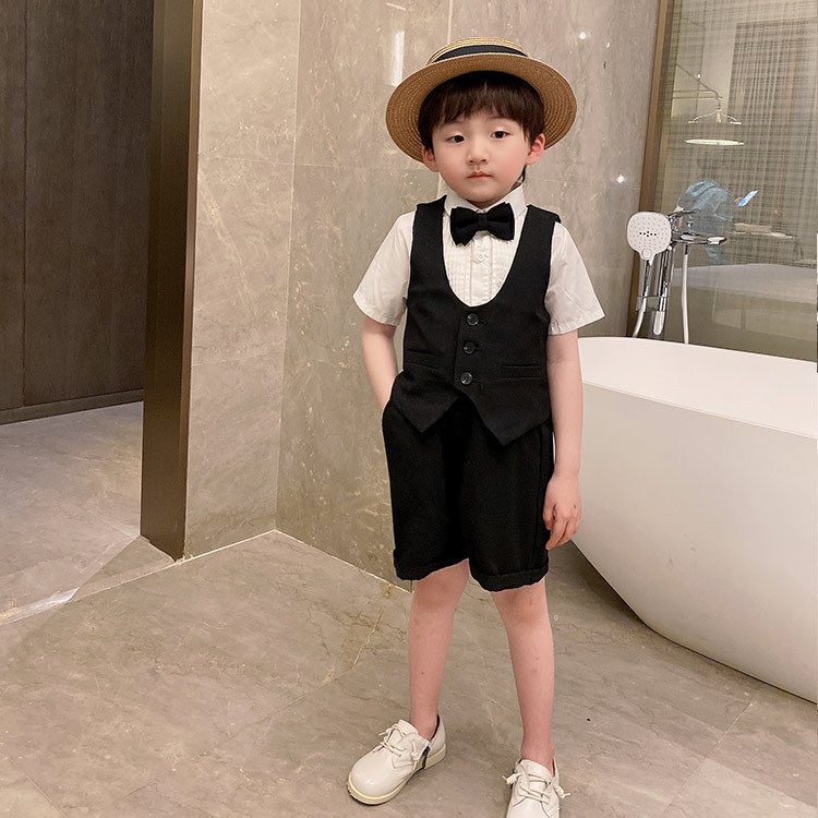 Boy gown suit Summer short sleeves Children's suit Leisure Inn Wind flower Sissy Birthday Walk Show Host Performance
