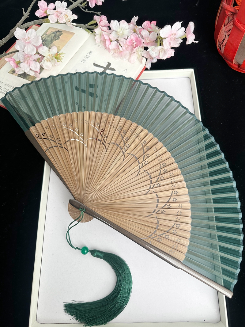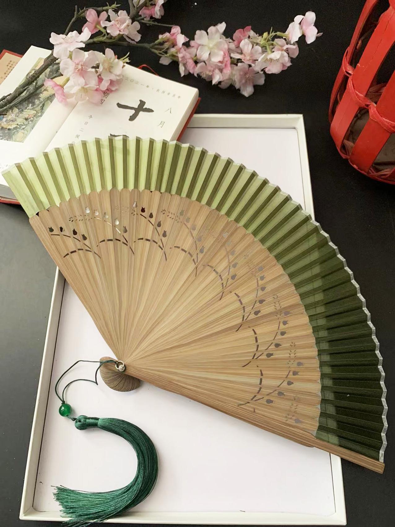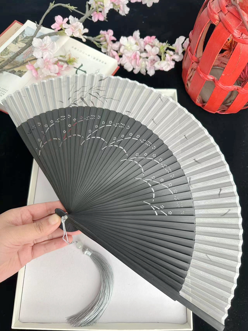 Ancient fan folded Aya silk bamboo retro 6 inches pure core sculpture hollow rice white folding flagrobe summer