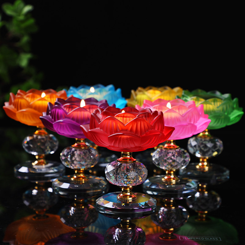 Candle candle holder dedicated to the Buddha lamp ghee lamp lamp holder Home candle base Crystal lotus glass for Buddha supplies