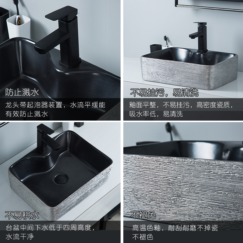 Light luxury Art Table Euro-style Metal Glaze Basin Toilet Creativity with Tap Hole Square Washing Basin
