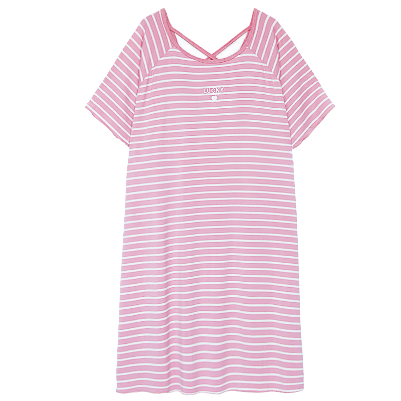 Striped love night dress women's summer modal halter short sleeve cute pajamas cotton loose fat MM thin section home clothes