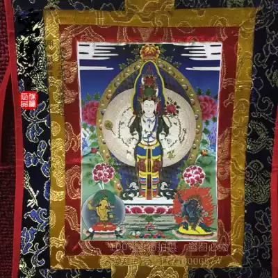Tibetan Buddhism Thangka Thousand-Hand Guanyin Portrait Hot Gold Small Thangka High 35cmtimes 20cm