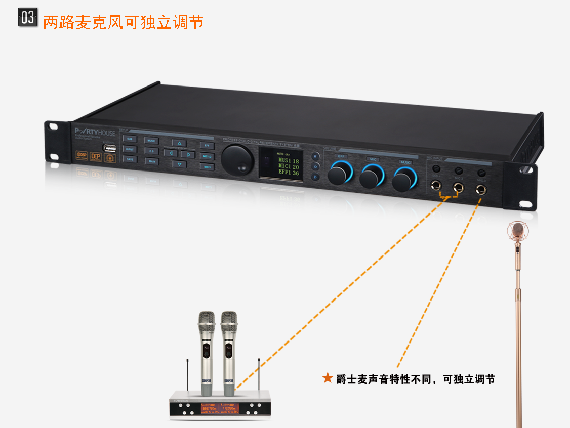 KTV Digital Efficiency Fruit Instrumental Sound Mixer Mixer Karaoke Machine 6DSP Processor Microphone Microphone Lifter
