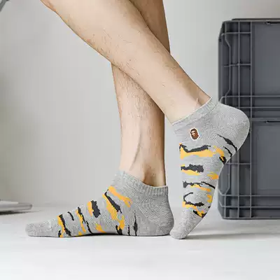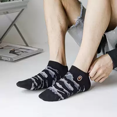 Five pairs of Tide brand cotton embroidery camouflage socks trend youth hip-hop invisible shallow boat Socks men's socks