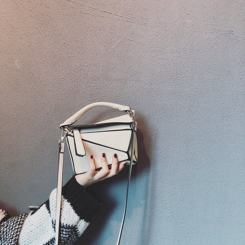 Hong Kong 2021 new puzzle geometric bag leather women's bag pet messenger portable small pillow bag soft leather
