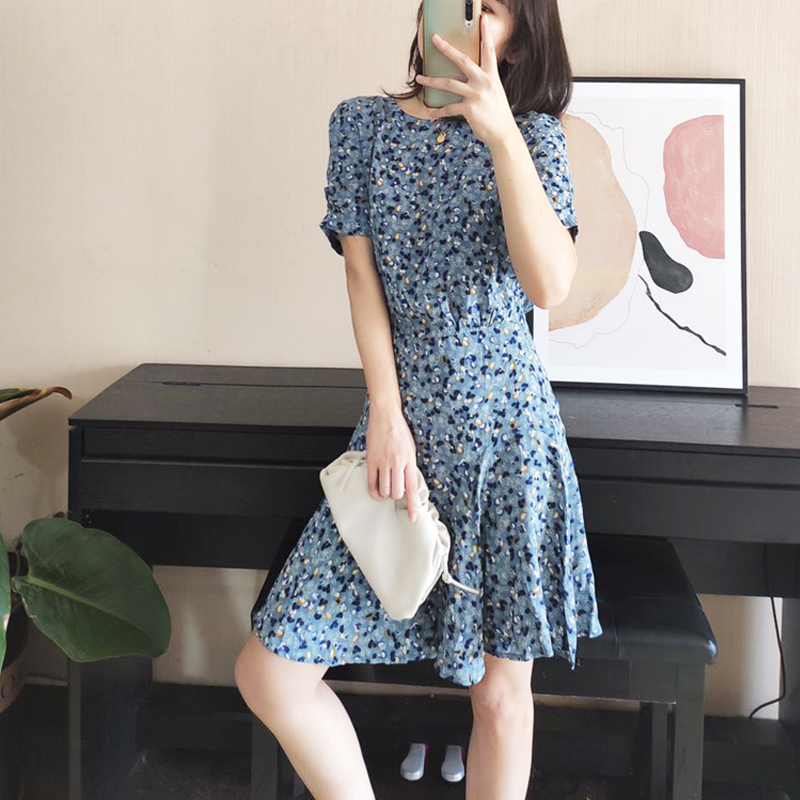 claudie pasey2022 summer new dress female floral French retro waist puff sleeve temperament