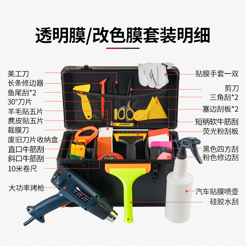 Car film tool set box TPU invisible car clothing color change film construction tools full set of special baking gun scraper
