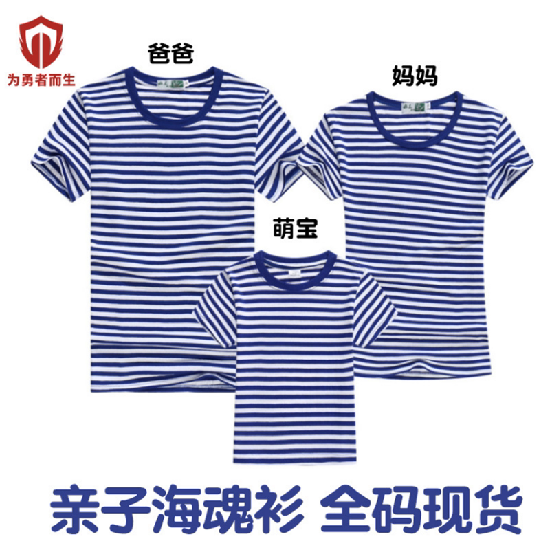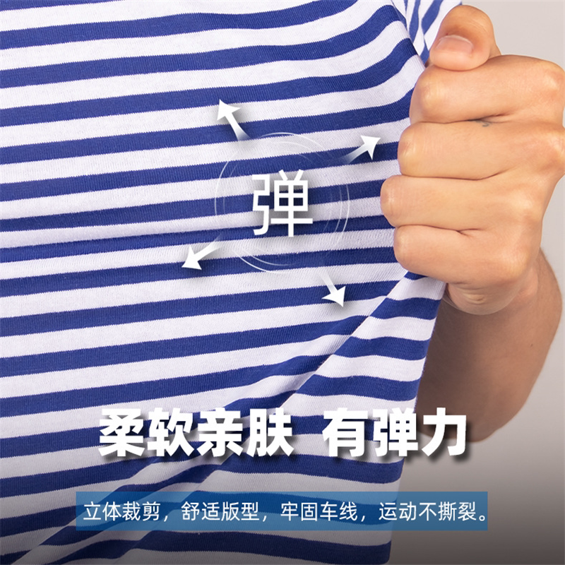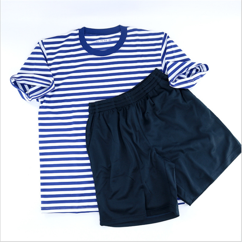 Marine physical fitness training suit sea soul shirt round neck T-shirt short-sleeved shorts army physical fitness uniform military training blue and white striped cotton