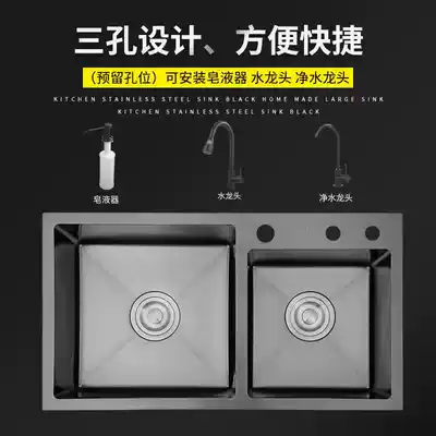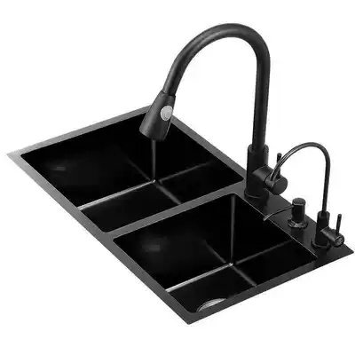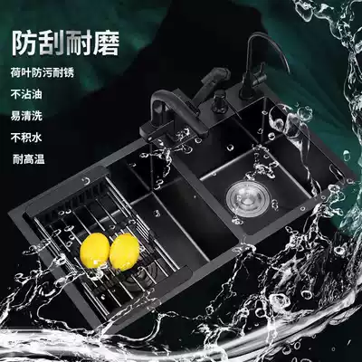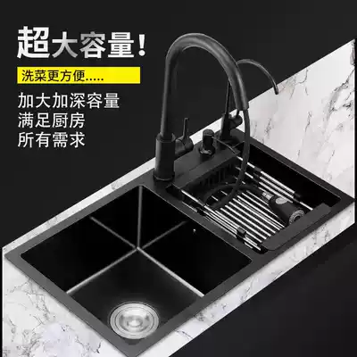 JOMQCWA black nano kitchen sink double sink authentic 304 stainless steel handmade basin Household thickened vegetable basin