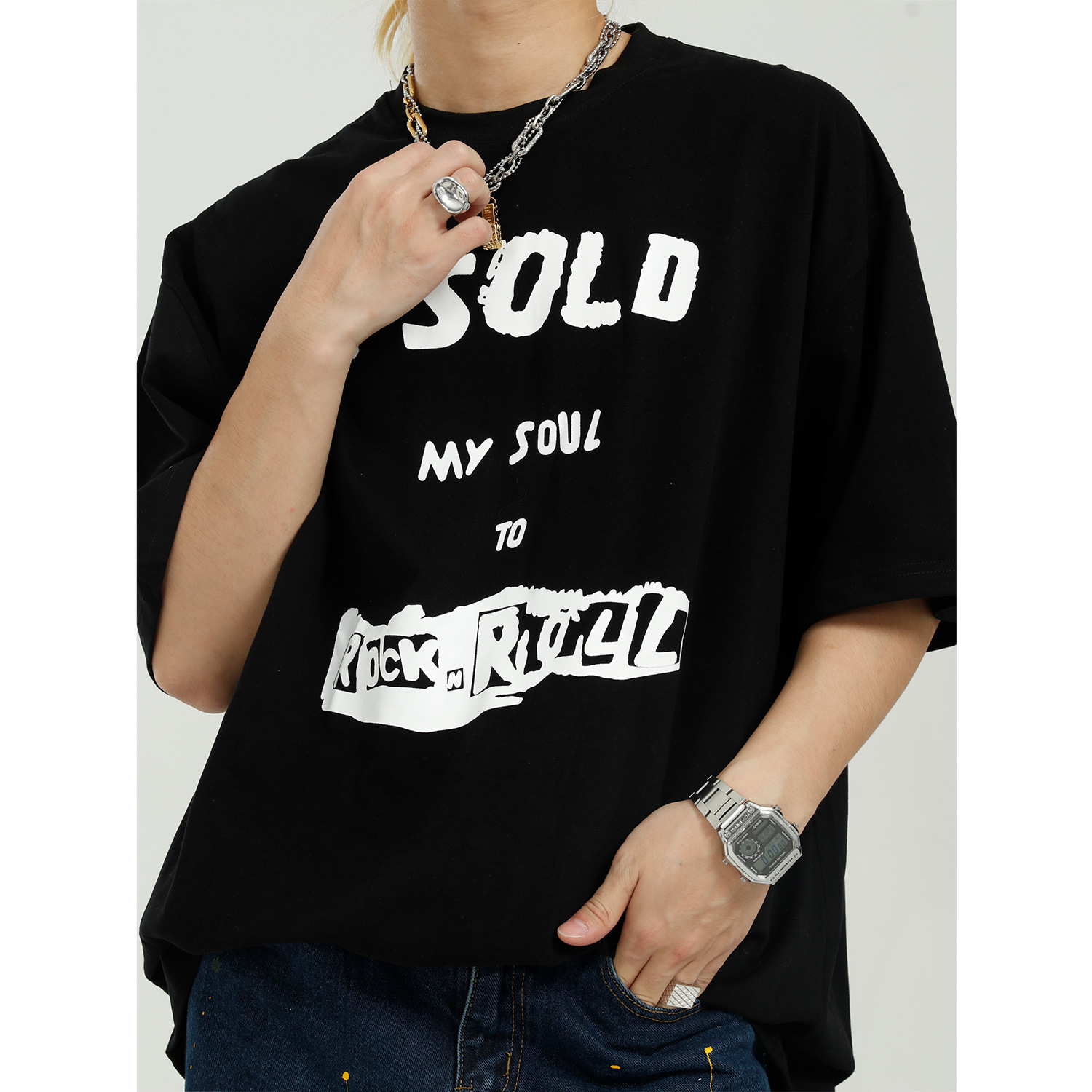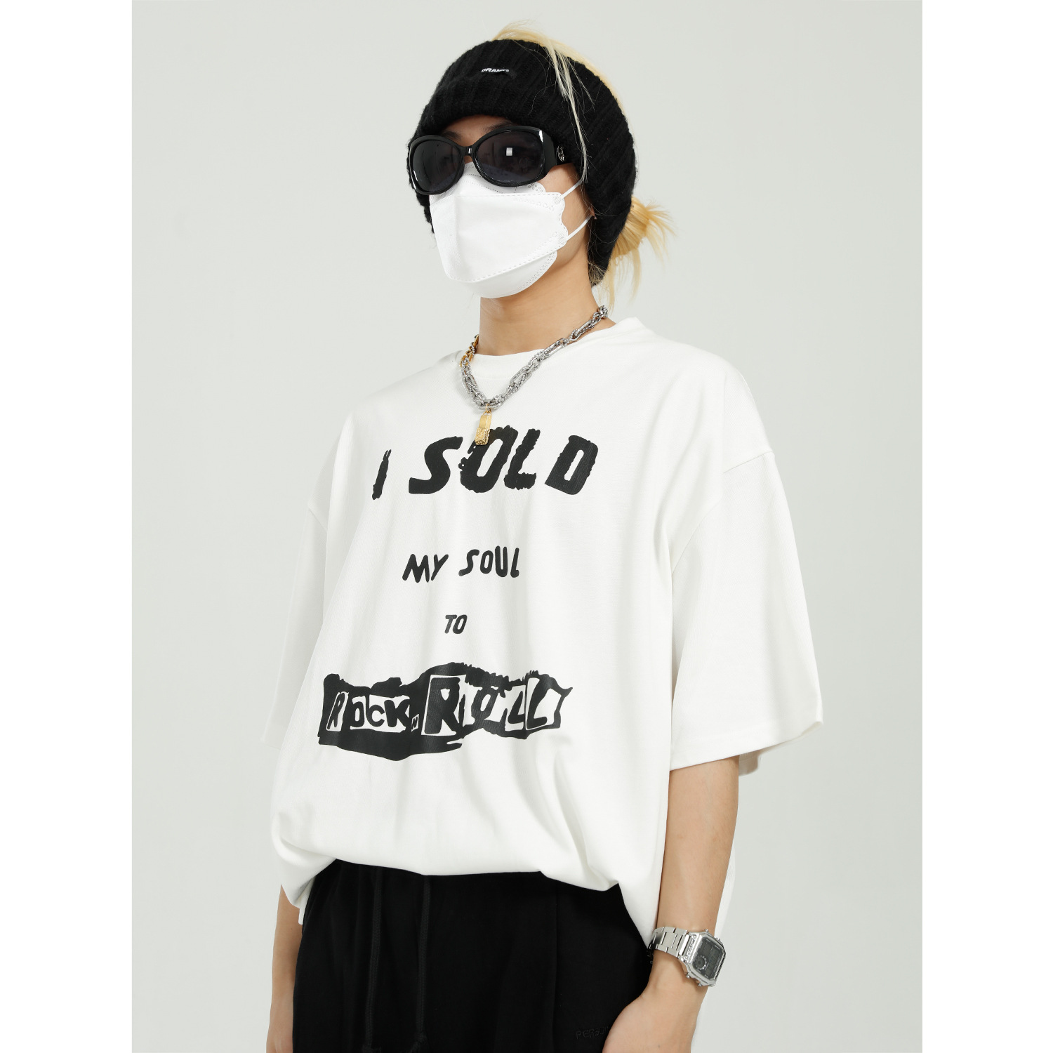 Dosho Men's Clothing 2021 Summer New Pint Port Wind Retro Black And White Letters Short Sleeve Loose Personality Trend T-shirt Man