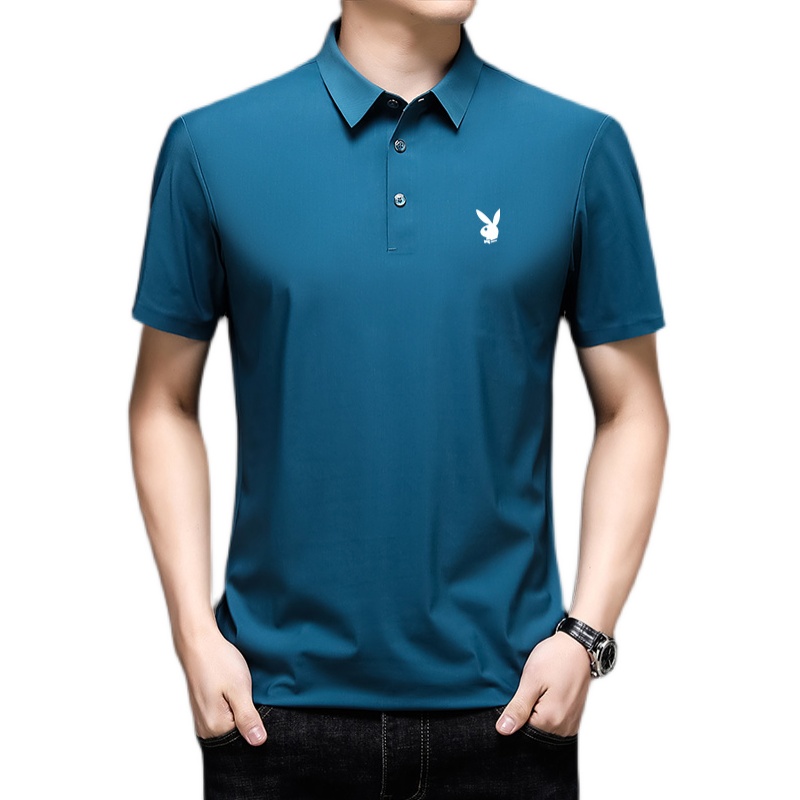 Playboy summer ice silk polo shirt men's business high-end solid color large size iron-free short-sleeved quick-drying T-shirt tide