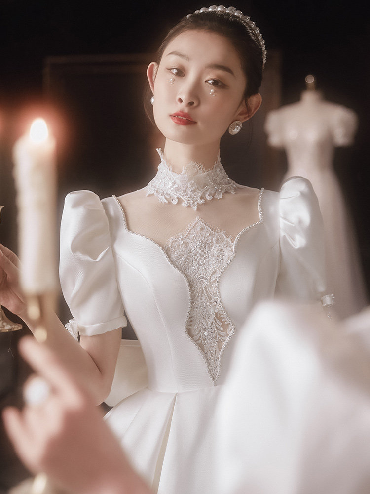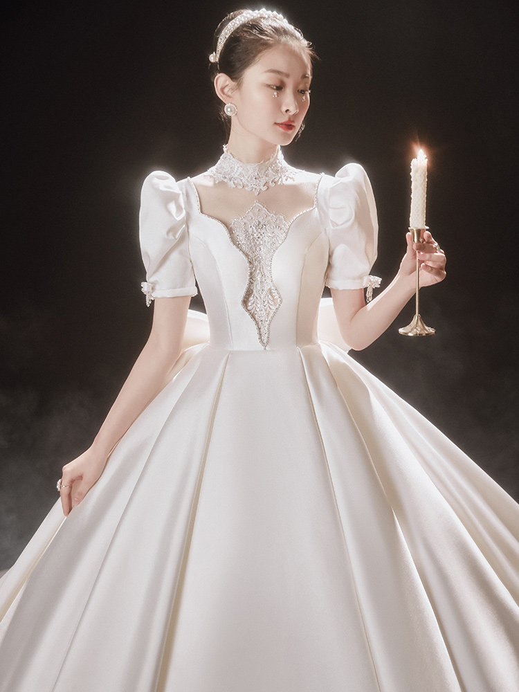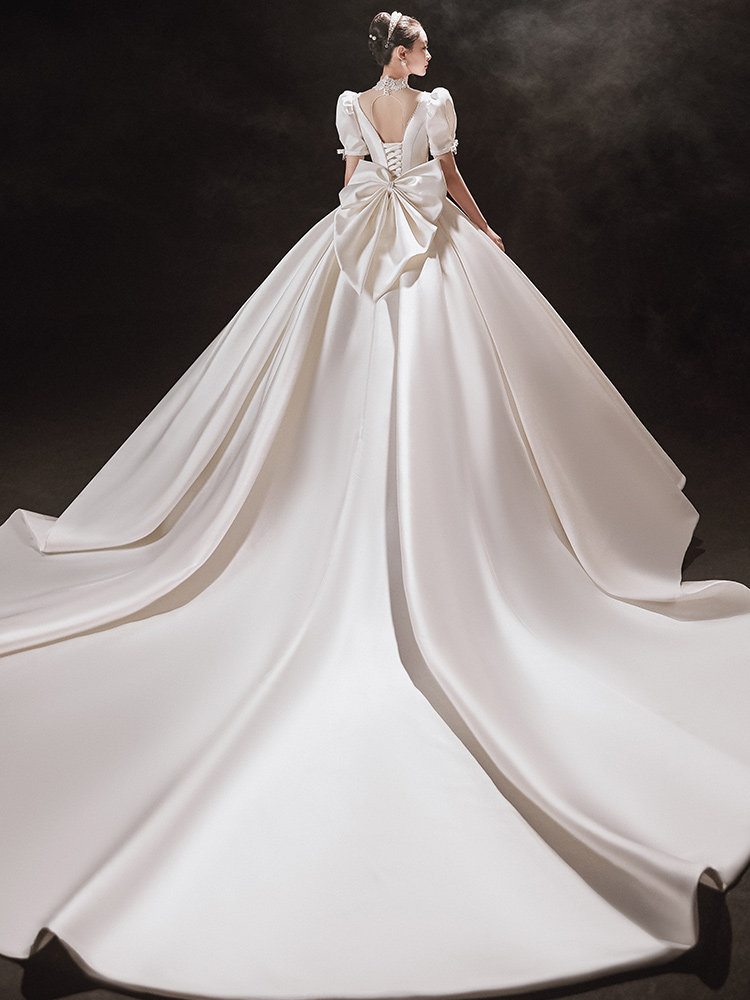 Zhi Lu) main wedding dress 2021 summer new bride satin court tailing simple temperament Princess wind out