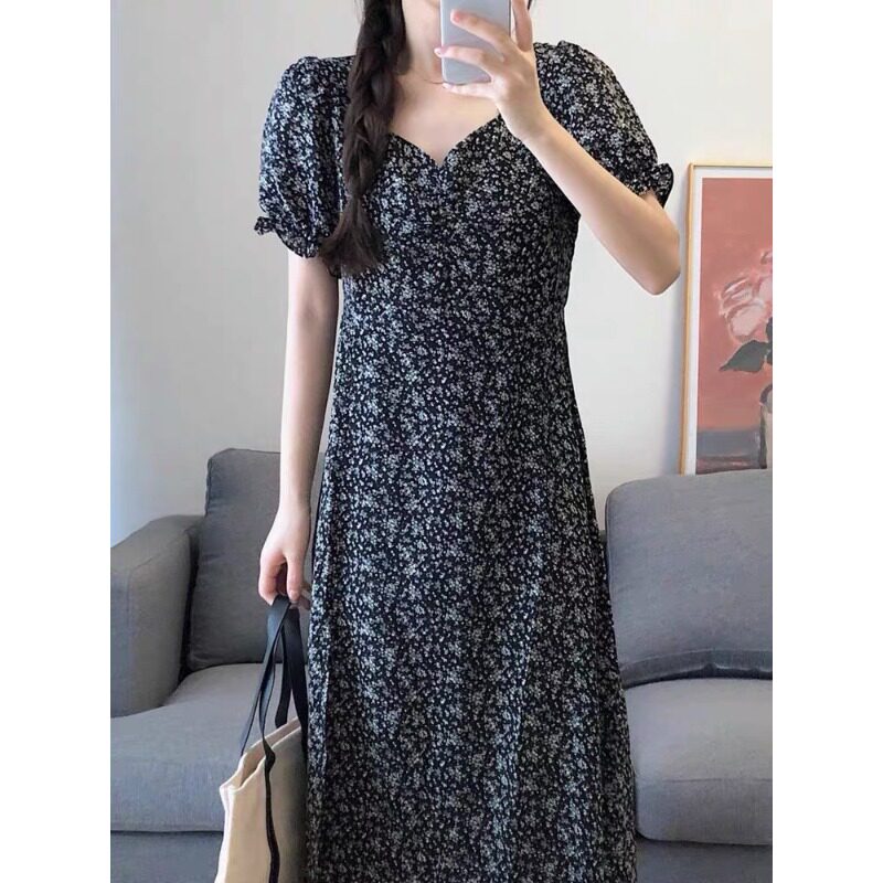 Fa-style vintage Hercules with light and warm temperament The elder sister receives a waist display slim lead with a blistering sleeveless black crushed floral ocean dress