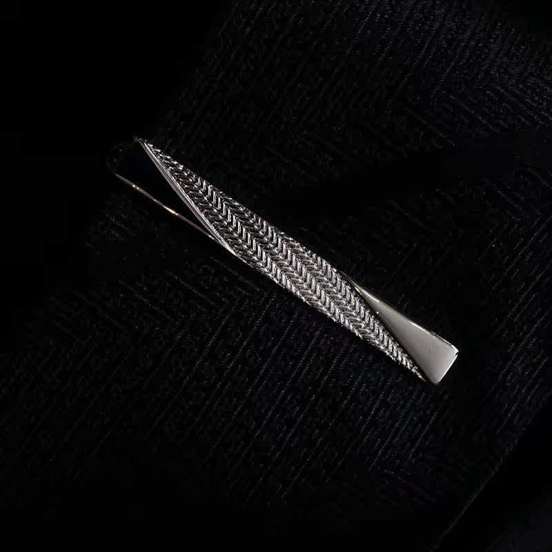 Augustine pure copper embossed herringbone pattern tie clip electroplating silver business formal collar clip occupation