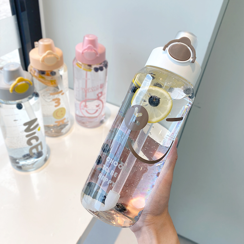 Simple and cute large-capacity plastic cup female students summer sports water cup with straw portable fitness cup takeaway