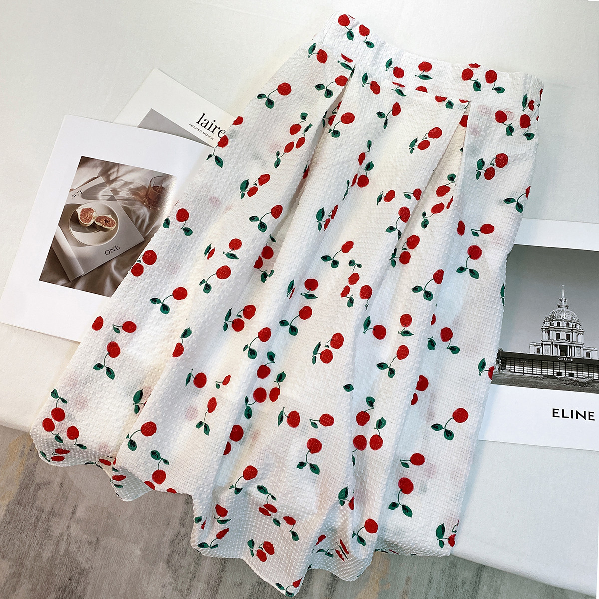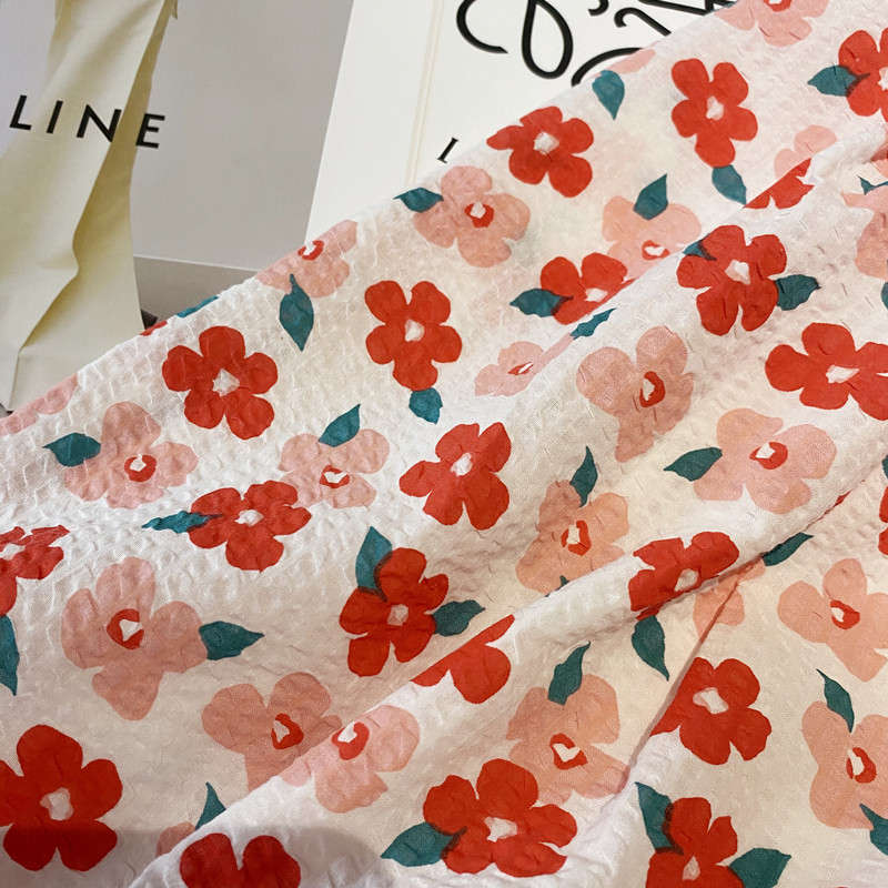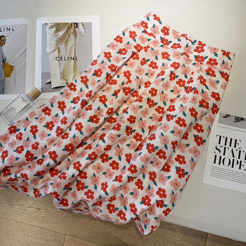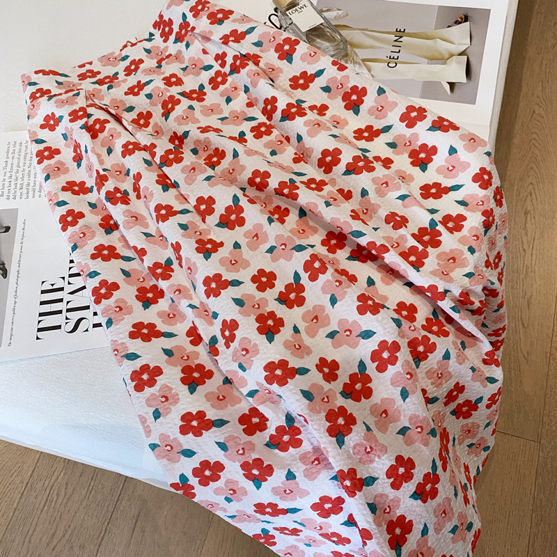 Floral bubble cotton pleated skirt women's 2023 summer new Korean version high waist thin French print umbrella skirt